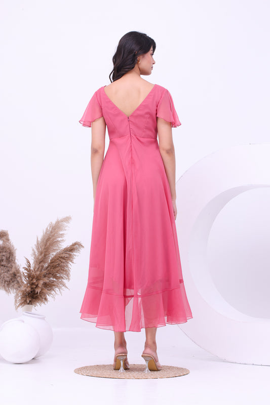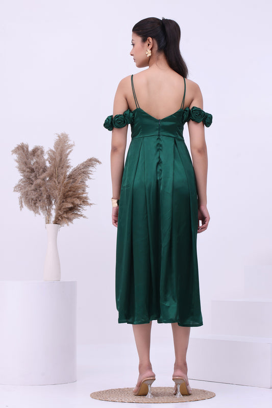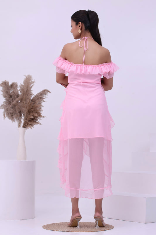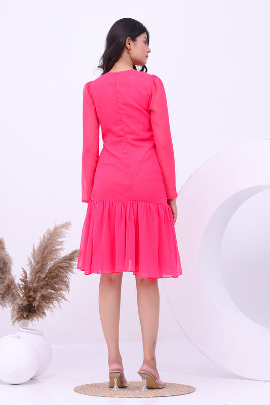 Hot Pink Ruffle Rose Off-Shoulder Dress