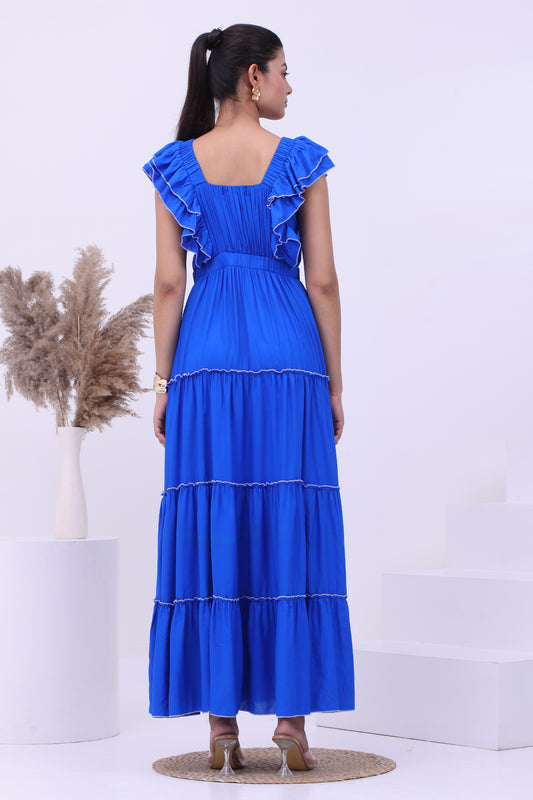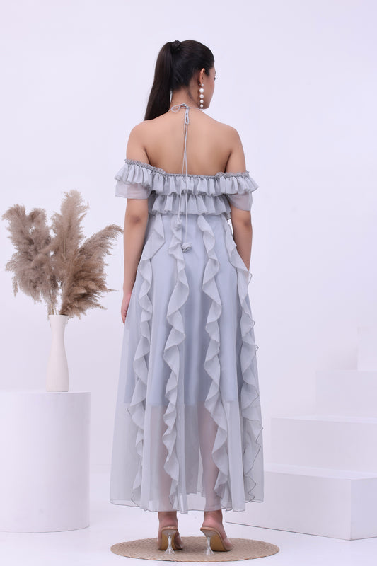 Frost Petal Ruffle Off-Shoulder Boho Maxi Dress