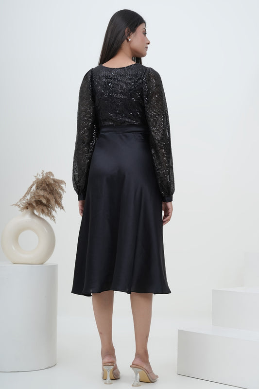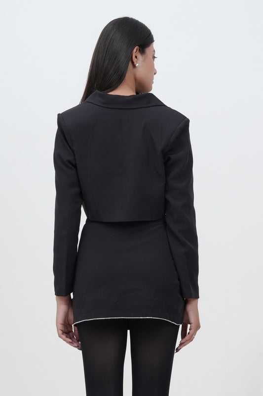 Uptown Chic Black Banana Crepe Blazer And Bow Skirt Set