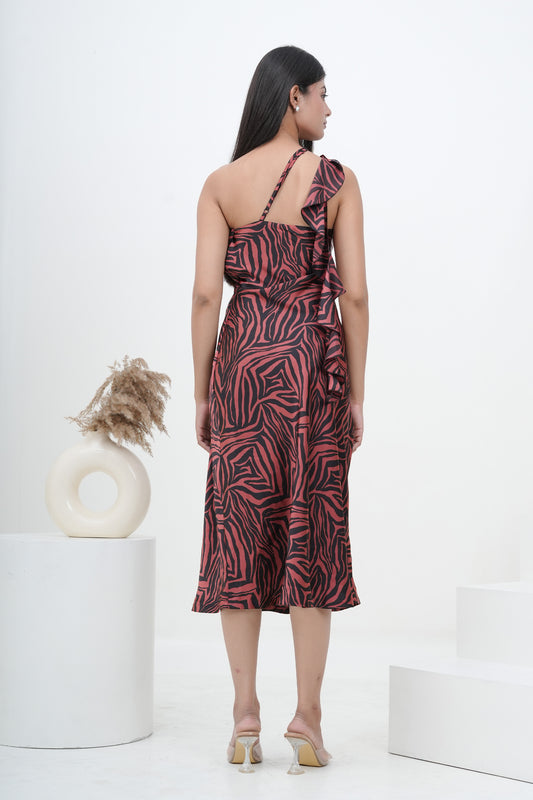 Wild Elegance Satin Print One Shoulder Maxi Dress