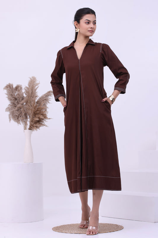 50% OFFMocha Line Shirt Dress