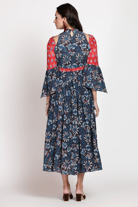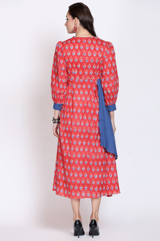 Sanganeri Floral Midi Dress With Shrug