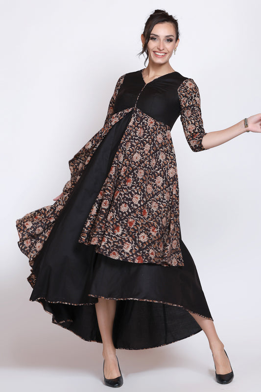 Black Angrakha High Low Bagru Dress