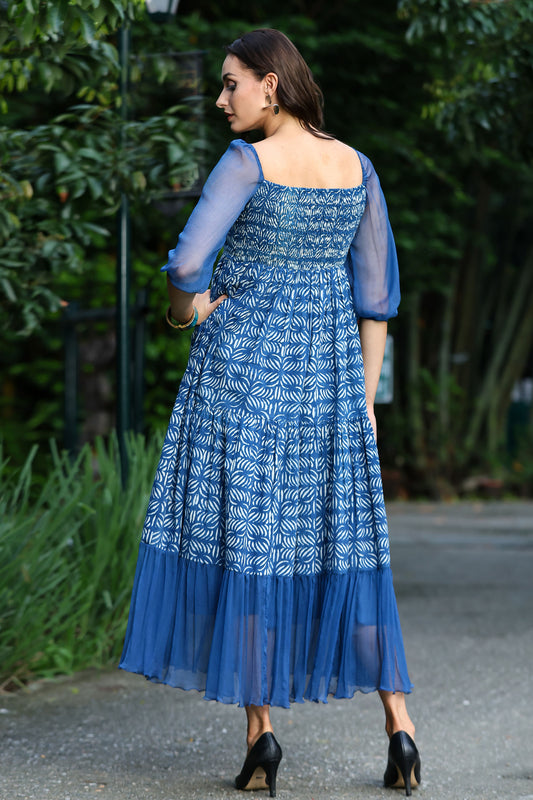 70% OFFIndigo Handblock Midi Dress