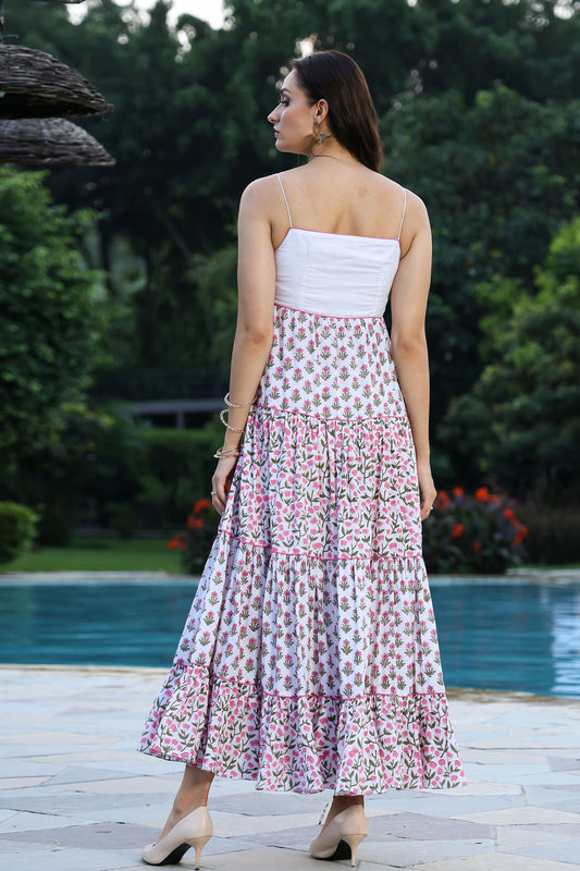 Sanganeri Floral Tiered Maxi Dress With Shrug