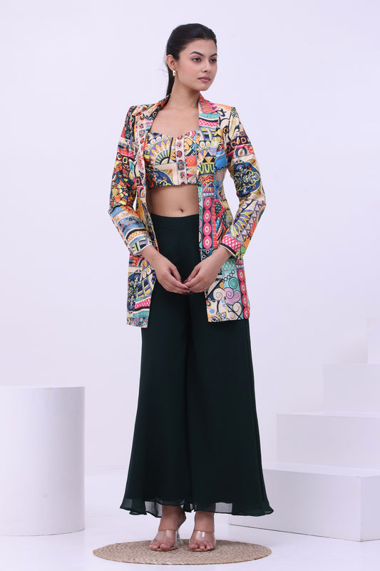 Jade Printed Sharara Set With Blazer