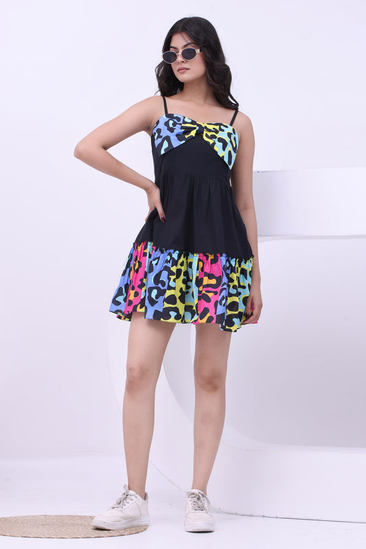 Leopard Bow Charm A-line Sleeveless Tier Dress