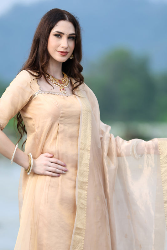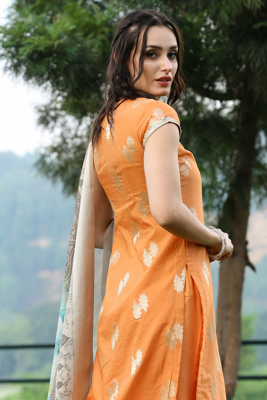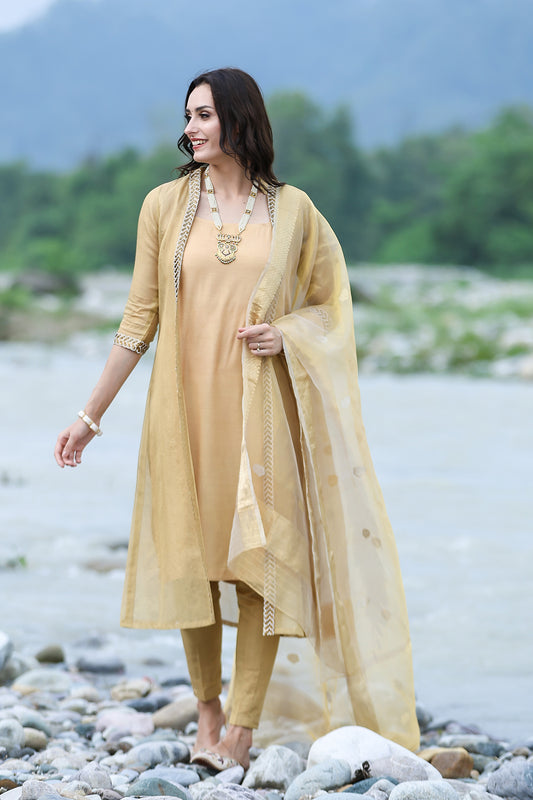 Gold Tissue Kota Handloom Sherwani Kurta Set