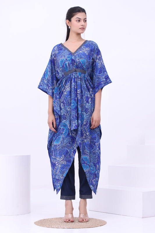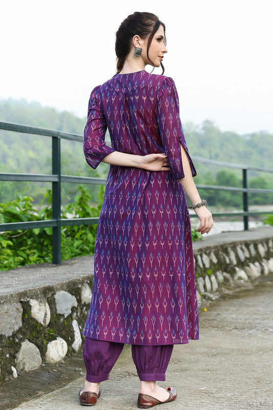 Violet Ikat Kurta With Solid Hem Cuffed Pants