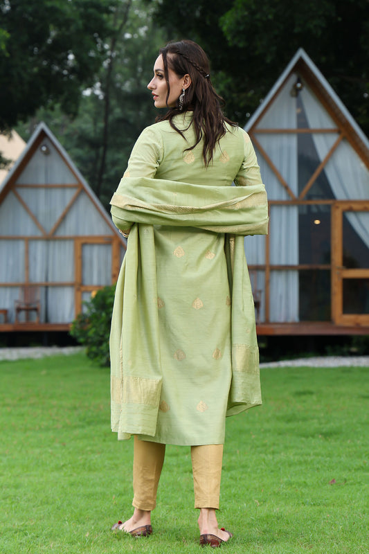 Pista Green Banarasi Handloom Munga Silk Suit Set