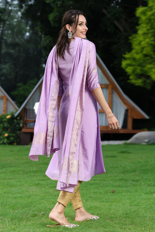 Lavender Banarasi Handloom Spun Silk Suit Set