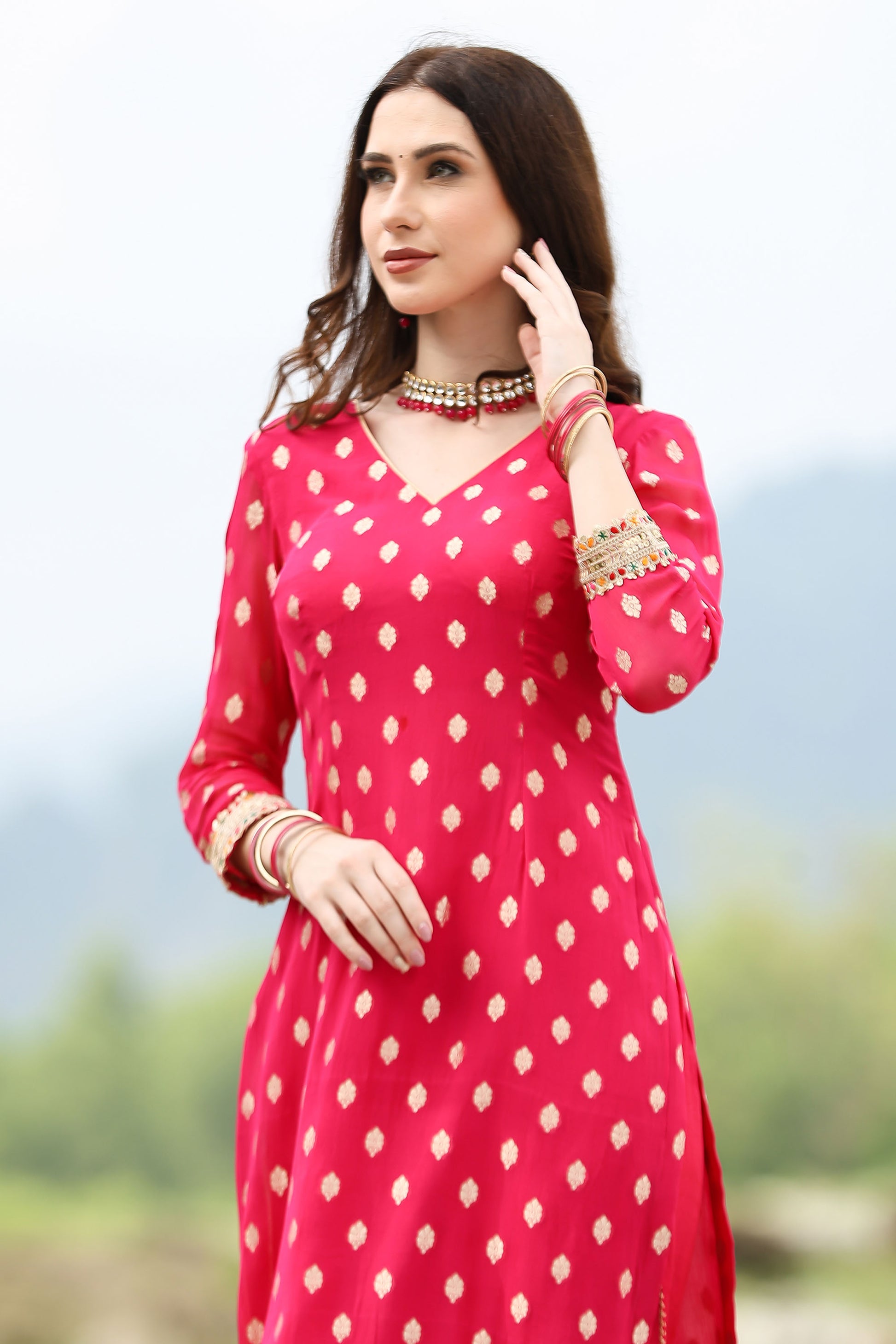 Banarasi Pink Handloom Georgette Suit Set With Duppatta