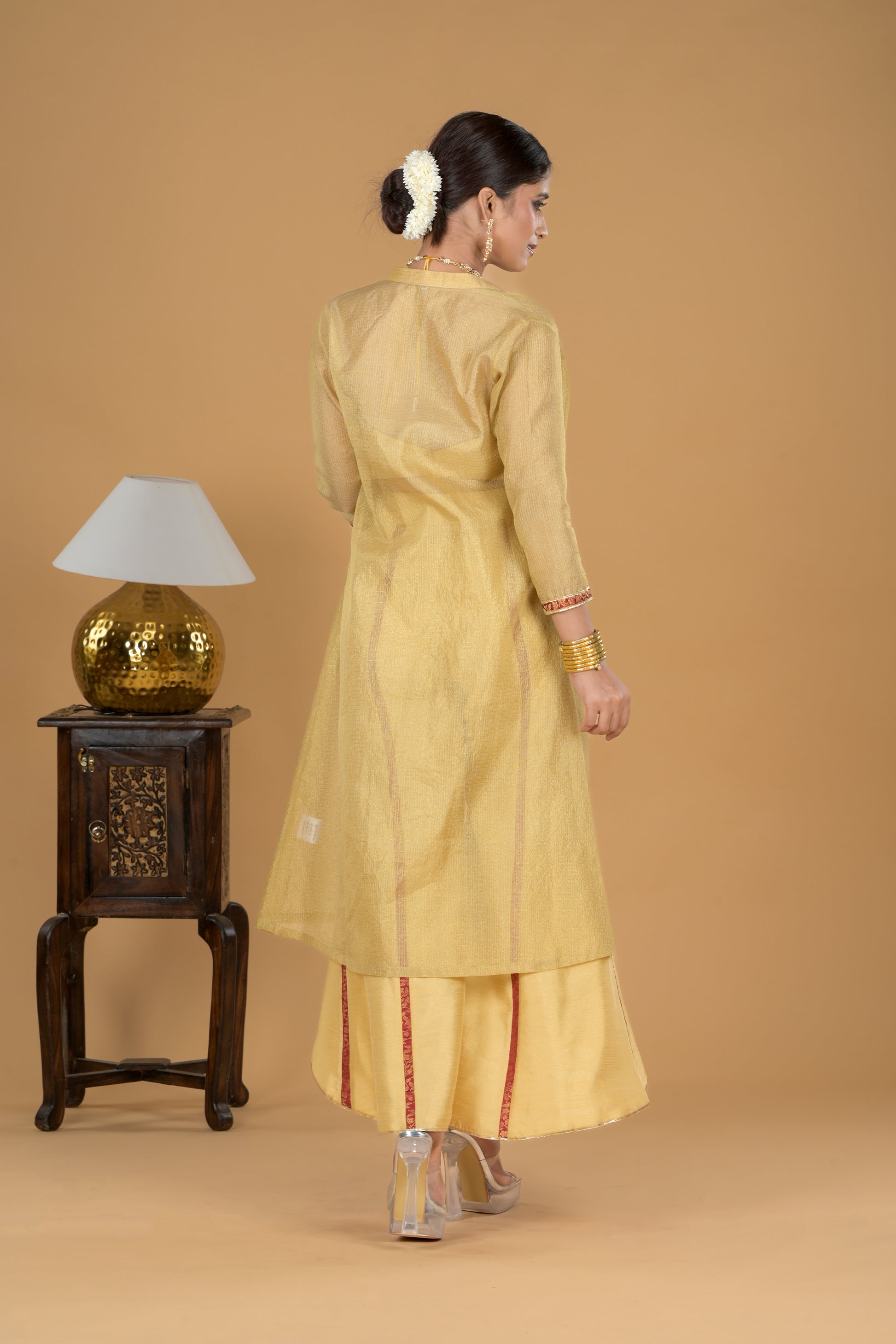 Golden Ethnic Co-ord Set with Tissue Jacket