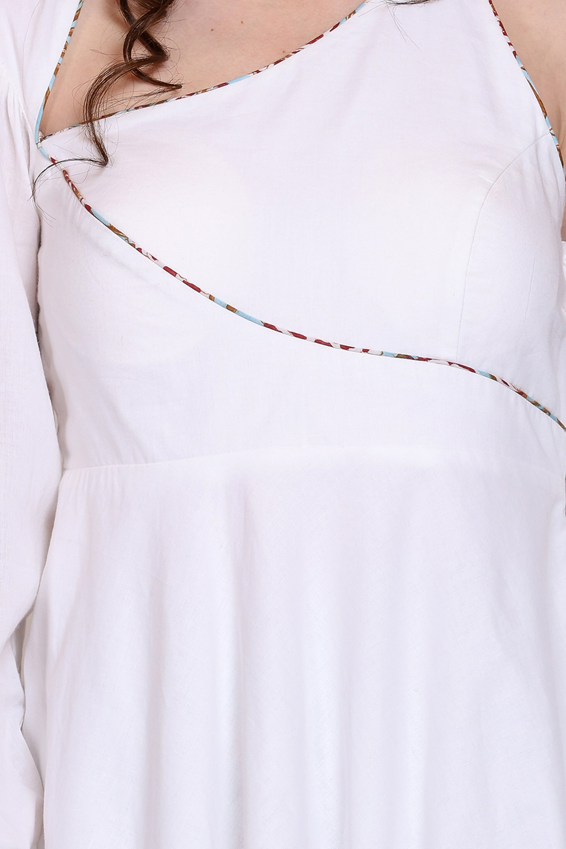 Sanganeri Assymetrical Flared White Dress With Skirt