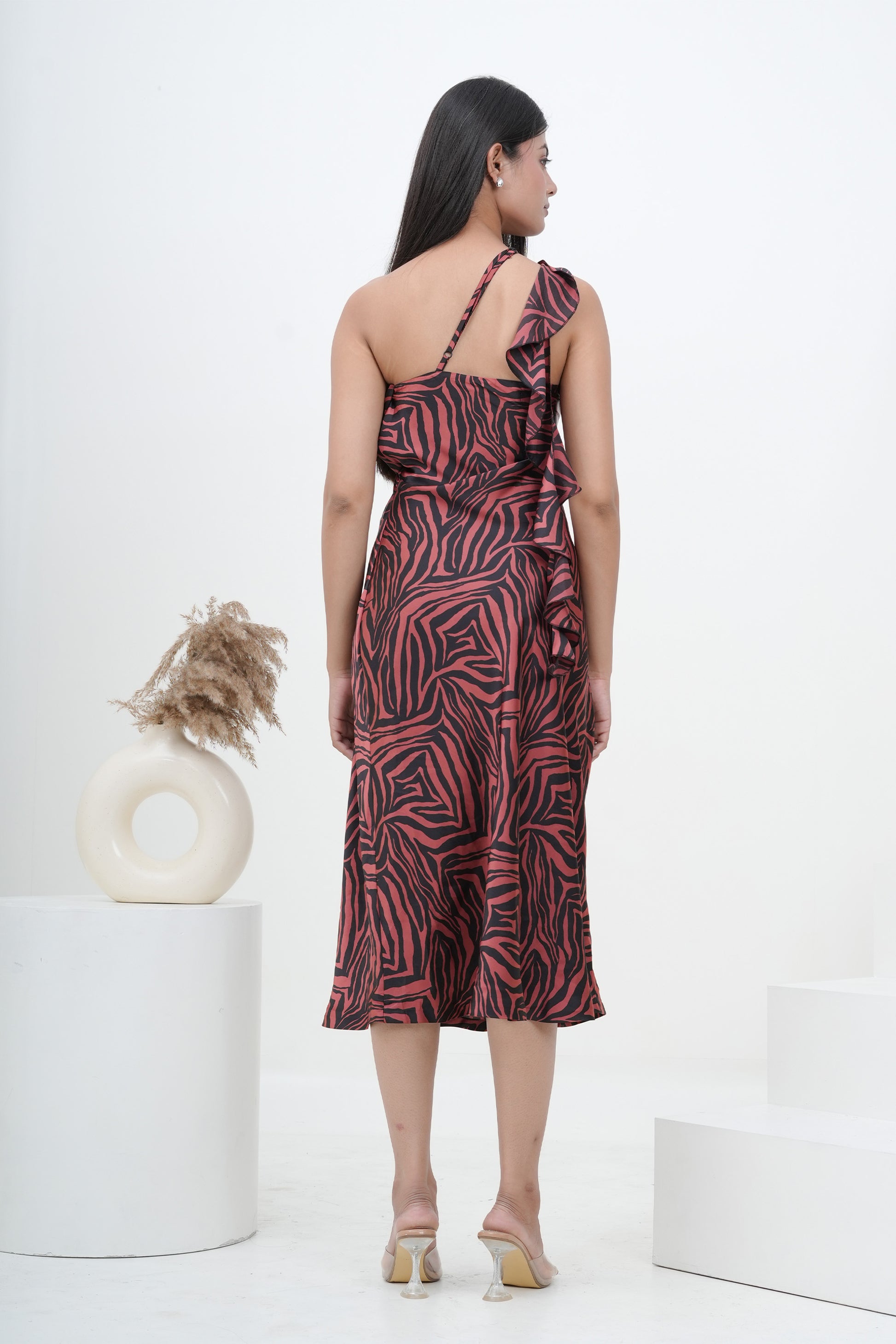 Make a statement in our ""Wild Elegance"" Satin Print One Shoulder Maxi Dress! This stunning and bold maxi dress is a true showstopper, designed to turn heads and exude confidence. The one-shoulder style adds a touch of allure, while a tassel hanging delicately from the shoulder creates a whimsical and playful detail. Crafted from luxurious satin fabric, the dress features a fierce tiger print in dark and black hues, adding a touch of exotic allure. The combination of sophistication and boldness makes this dress perfect for any occasion where you want to stand out. Whether it's a romantic date, a special occasion, a cocktail party, or a night out with friends, this dress will elevate your look with its classy and daring appeal. Embrace your wild side and unleash your inner elegance with the ""Wild Elegance"" Satin Print One Shoulder Maxi Dress. Command attention and radiate confidence in this striking and versatile piece that is sure to make you the center of attention wherever you go.